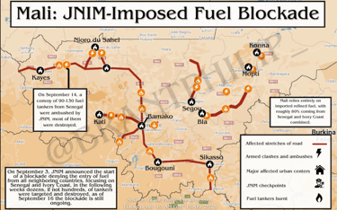 Mali is currently going through a critical phase of destabilization resulting from Jama'at Nusrat al-Islam wal-Muslimin's (JNIM, an armed group affiliated with Al-Qaeda) blockade of fuel supply routes from Côte d'Ivoire, Senegal, and Mauritania, with the aim of putting pressure on the military leaders, headed by General Assimi Goïta.